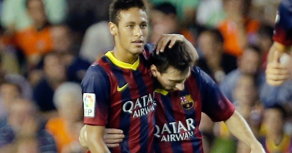 Messi dá show em vitória do Barça sobre o Valencia e comemora gol com Neymar - Juan Carlos Cárdenas/EFE