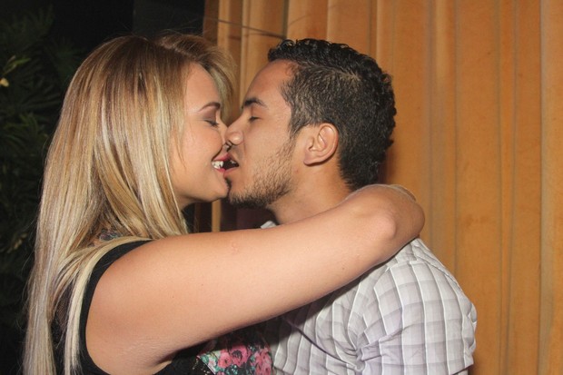 beijou muito neste sábado, 11. A loira levou o namorado, Ricardo Souza,