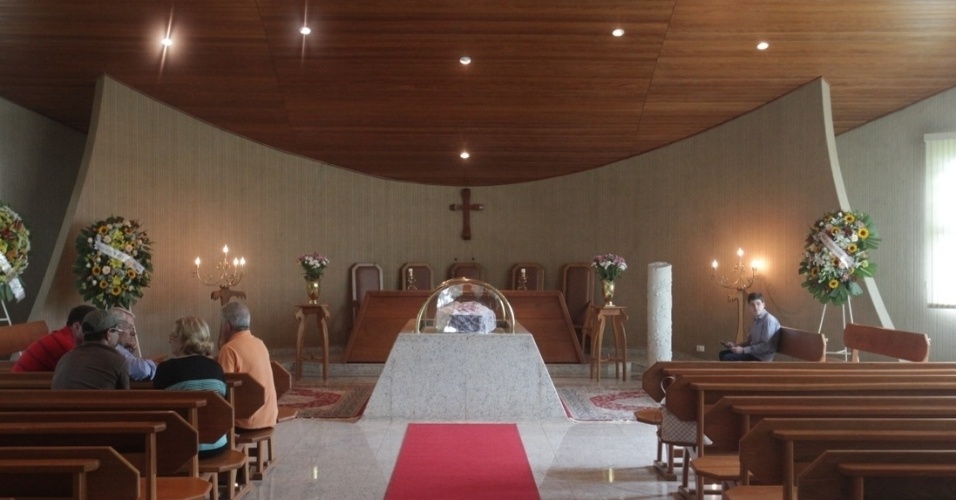 de Nelson Ned, falam com a imprensa no velório do cantor, no cemitério
