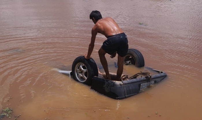 identificado por “Rafael”, que conseguiu sair do veículo dentro da água e