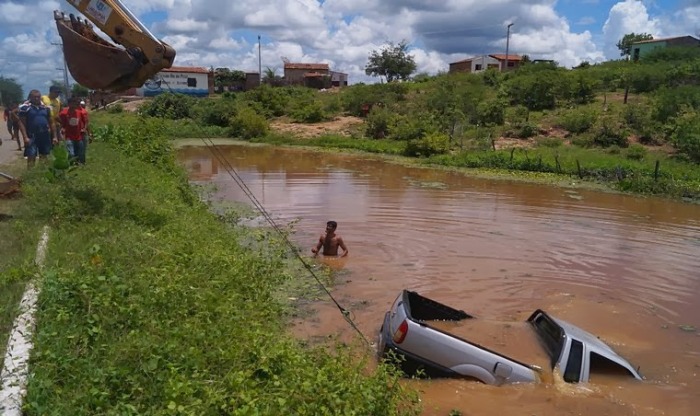 Carro de empresário da região de Cajazeiras cai dentro de açude; Motorista disse que perdeu o controle