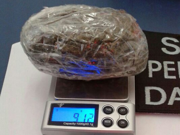Agentes acreditam que pacote com quase um quilo contém maconha.