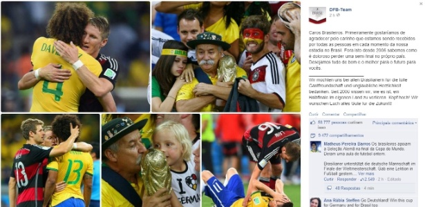O Facebook oficial da seleção da Alemanha demonstrou apoio ao Brasil