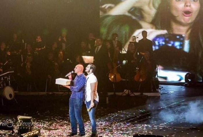 | Surpresa foi feita na frente do ídolo e de milhares de pessoas. Foto: Arquivo pessoal |