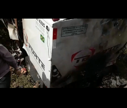 O carro-forte foi encontrado às margens da estrada, destruído. A polícia agora segue em diligência para localizar os envolvidos.