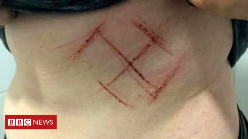 de uma simulação de agressão e a marcação de uma suástica no corpo de