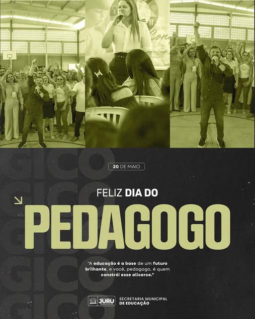 Nesta segunda-feira, 20 de maio, a Prefeitura de Juru, no Sertão da Paraíba, parabeniza todos os pedagogos e pedagogas que, com dedicação, sensibilidade e amor pelo saber, constroem diariamente os alicerces de um futuro mais justo, humano e transformador.