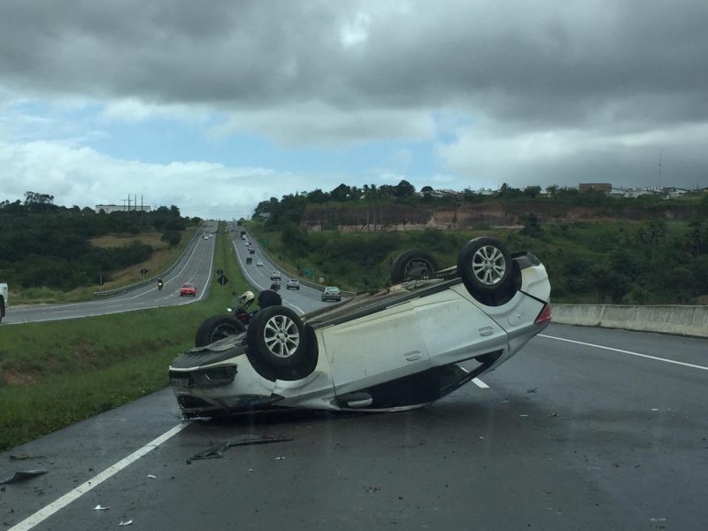 carro com quatro ocupantes capotou, na manhã desta segunda-feira (12),